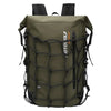 Externo: Cierre de superior enrollable, malla adicional y detalles reflectivos.
