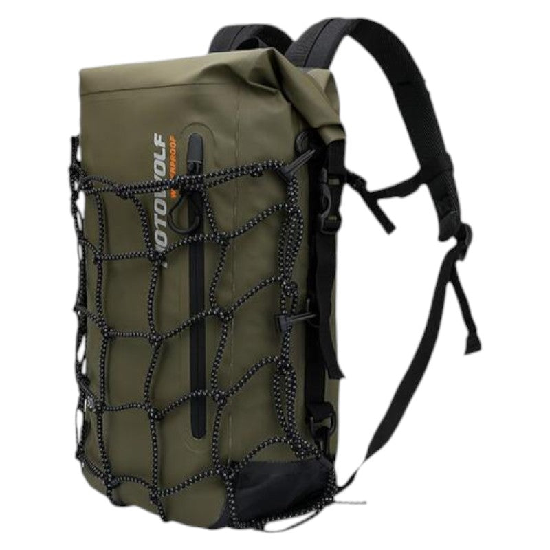 El Drybag MotoWolf tipo bulto de espalda combina funcionalidad impermeable con comodidad ergonómica. Diseñado para acompañarte en recorridos urbanos o aventuras sobre dos ruedas, mantiene tus pertenencias protegidas del agua, el polvo y la suciedad. Su confección en PVC de alta resistencia, costuras selladas y cierre enrollable aseguran un sellado total, mientras que sus tirantes acolchados y respaldo transpirable brindan confort durante el uso prolongado. Ideal para quienes necesitan un bulto resistente, práctico y listo para cualquier clima.