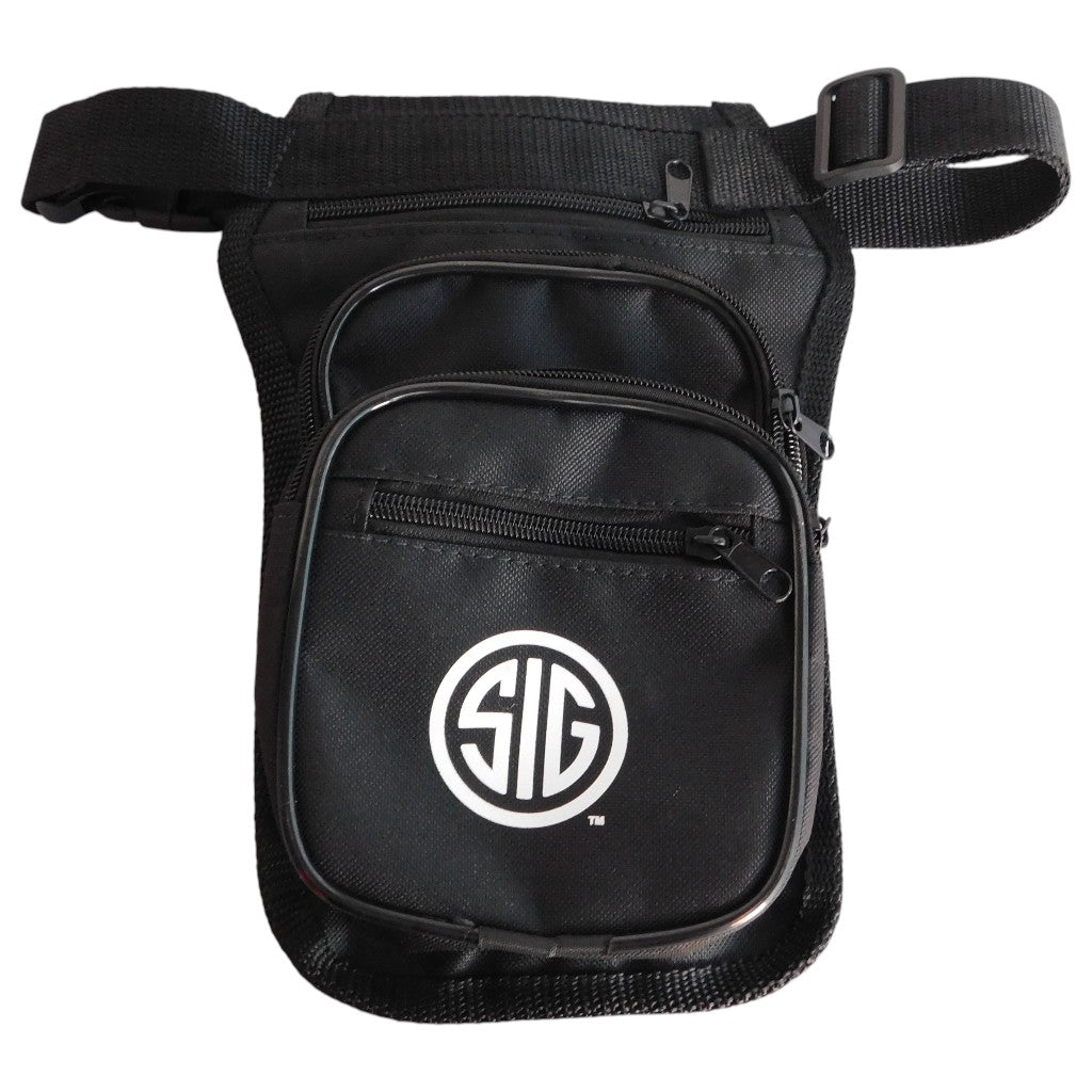 Externo: Bolsillo principal con cremallera, compartimento secundario frontal, fajas ajustables con broches que se adaptan a la pierna y cintura.