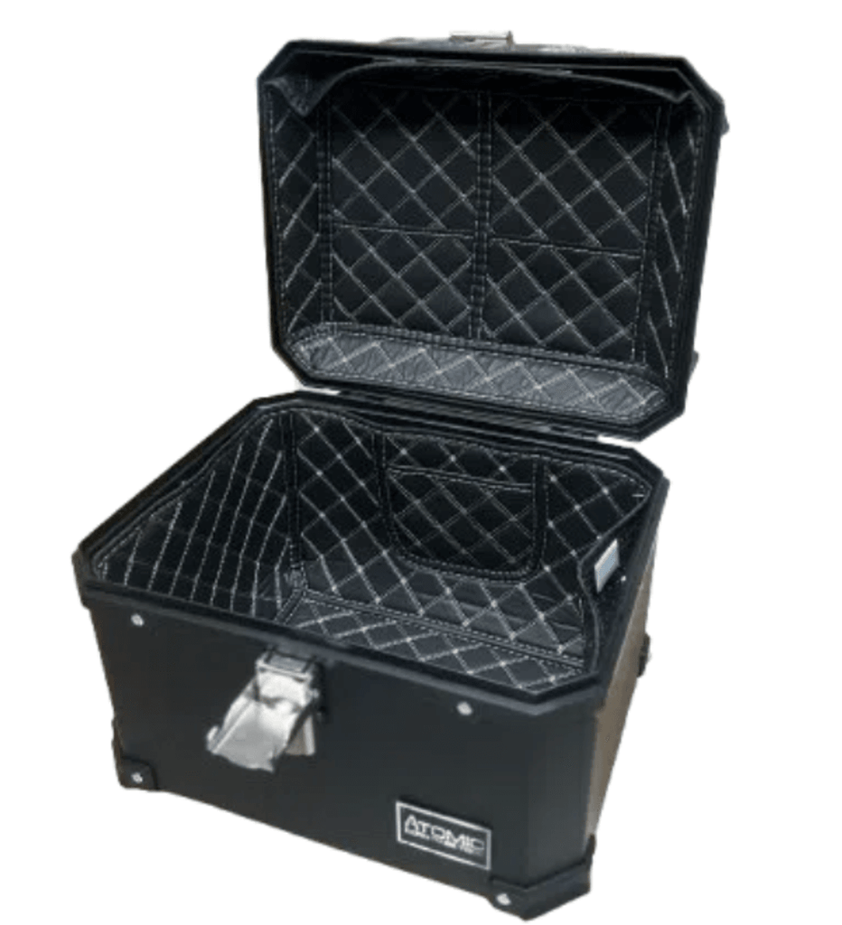 Este maletero de 45L Atomic ofrece una amplia capacidad para transportar cascos, equipaje o herramientas con total seguridad. Su diseño robusto y funcional es ideal para viajes largos, uso diario o trabajo en ruta, brindando espacio, resistencia y practicidad en cada recorrido.