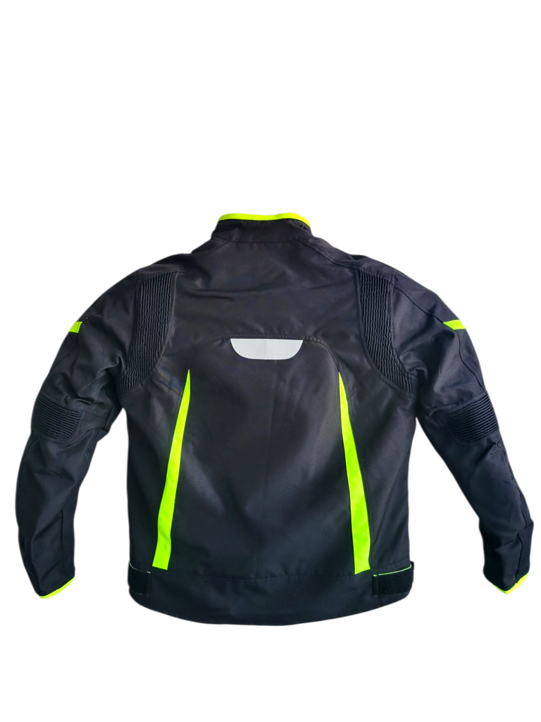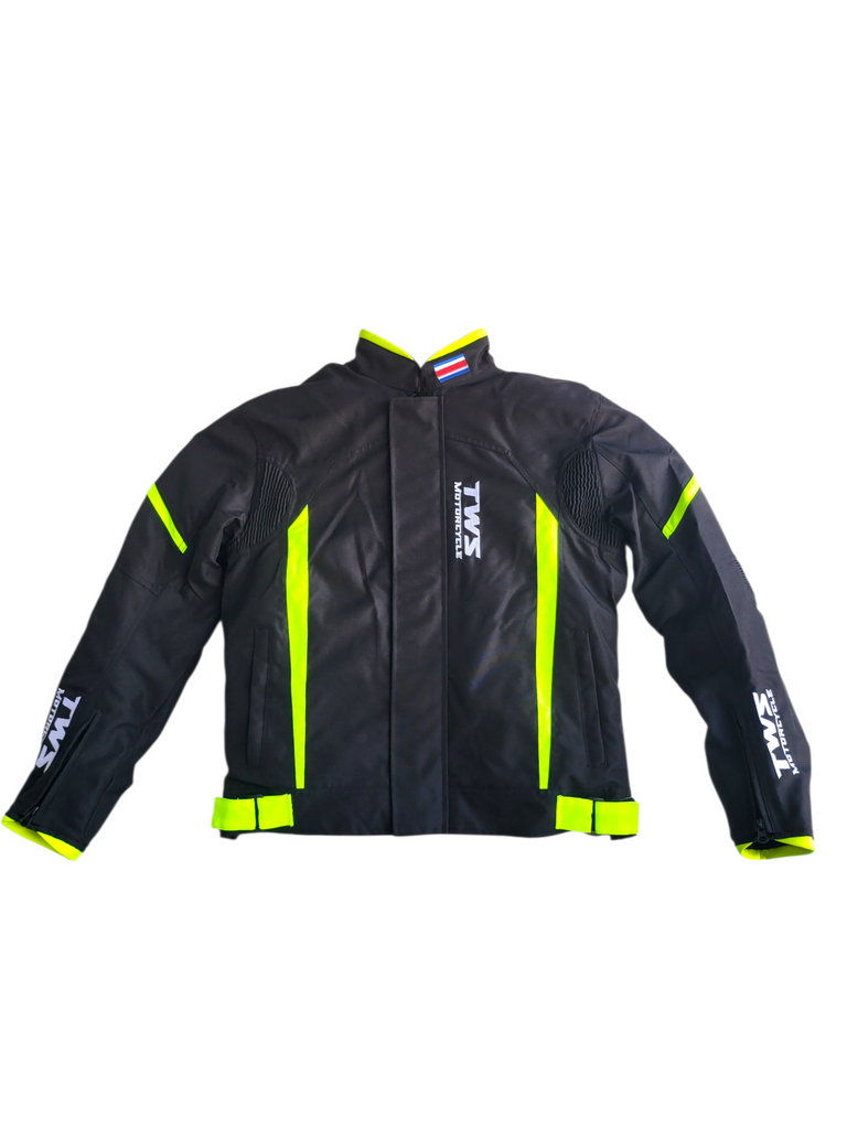 Jacket de protección TWS diseñada para brindar seguridad y comodidad en cada recorrido. Su diseño deportivo en color negro con detalles en verde, la convierte en una excelente opción tanto para ciudad como para carretera.