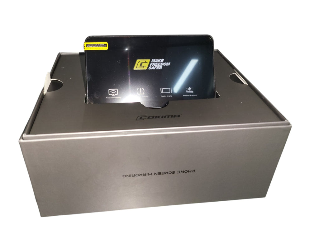Pantalla inteligente para motocicleta que permite usar GPS en tiempo real y funciones del celular (mapas, llamadas y música) de forma segura mientras se conduce.