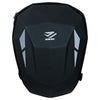 Externo: Capacidad aproximada de 20 litros expandible, compartimento principal con cierre seguro, correas ajustables para sujeción al asiento trasero, detalles reflectivos para mejorar la visibilidad y diseño rígido que mantiene la forma aún vacío.